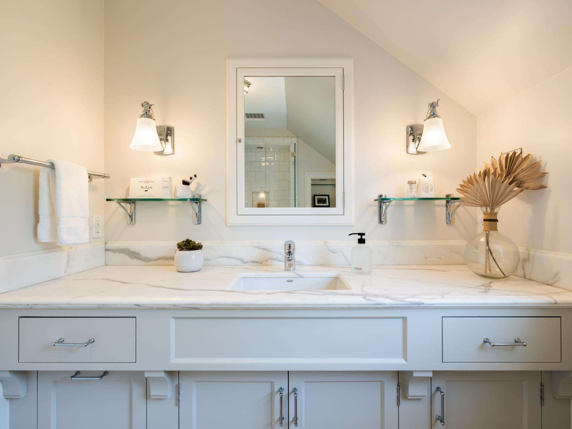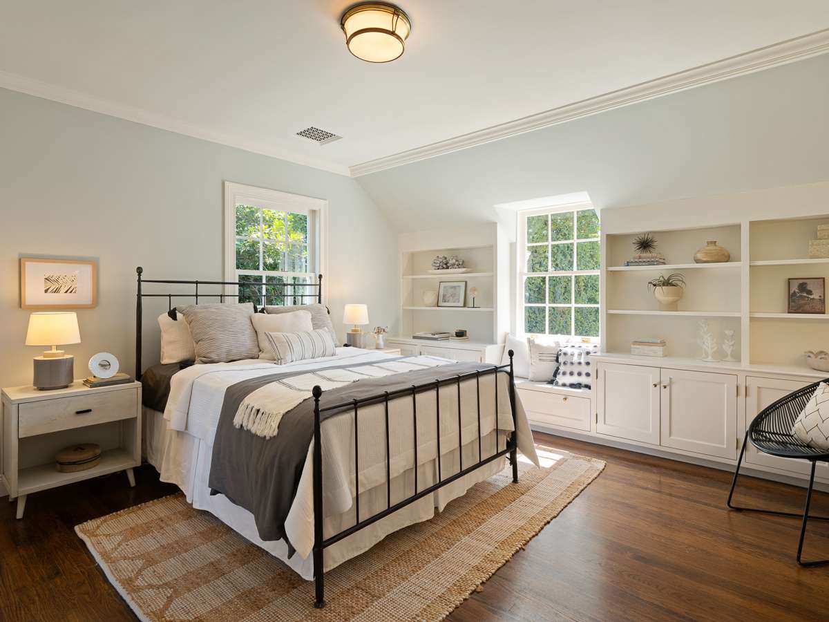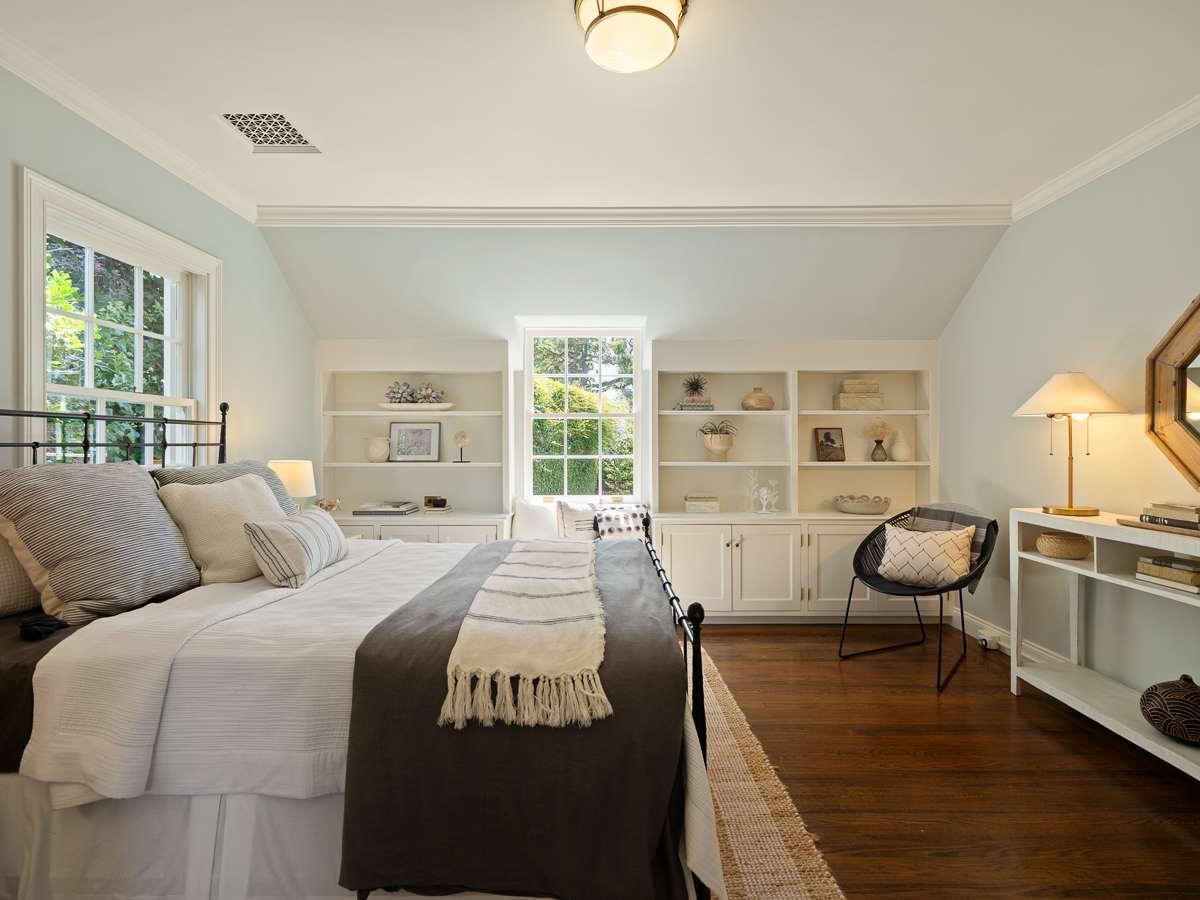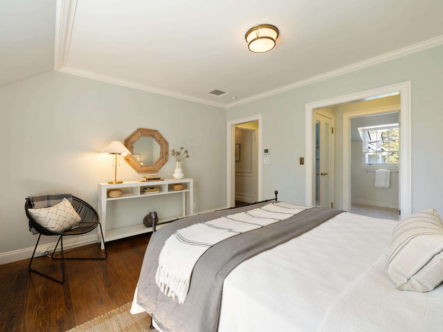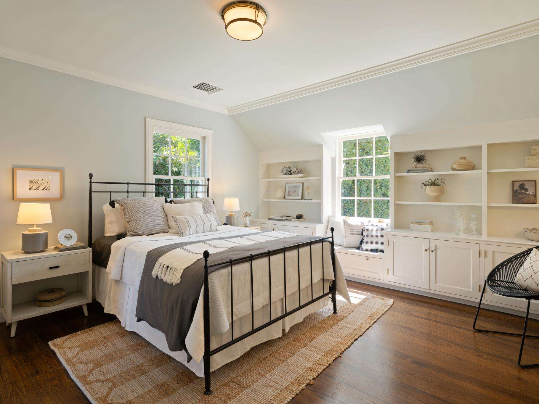 Upstairs, you’ll find six beautifully appointed bedrooms, each reflecting its own unique style, along with four-and-a-half baths, including two en-suites, one of which opens to a private terrace. The spacious and serene primary suite boasts a walk-in closet and a finely detailed bath. Some bedrooms offer captivating views of the San Francisco Bay. The third level provides over 600sq.ft. of adaptable bonus square feet, perfect for an artist’s studio, teen lounge, or sports room. A detached two-car garage completes the residence.
