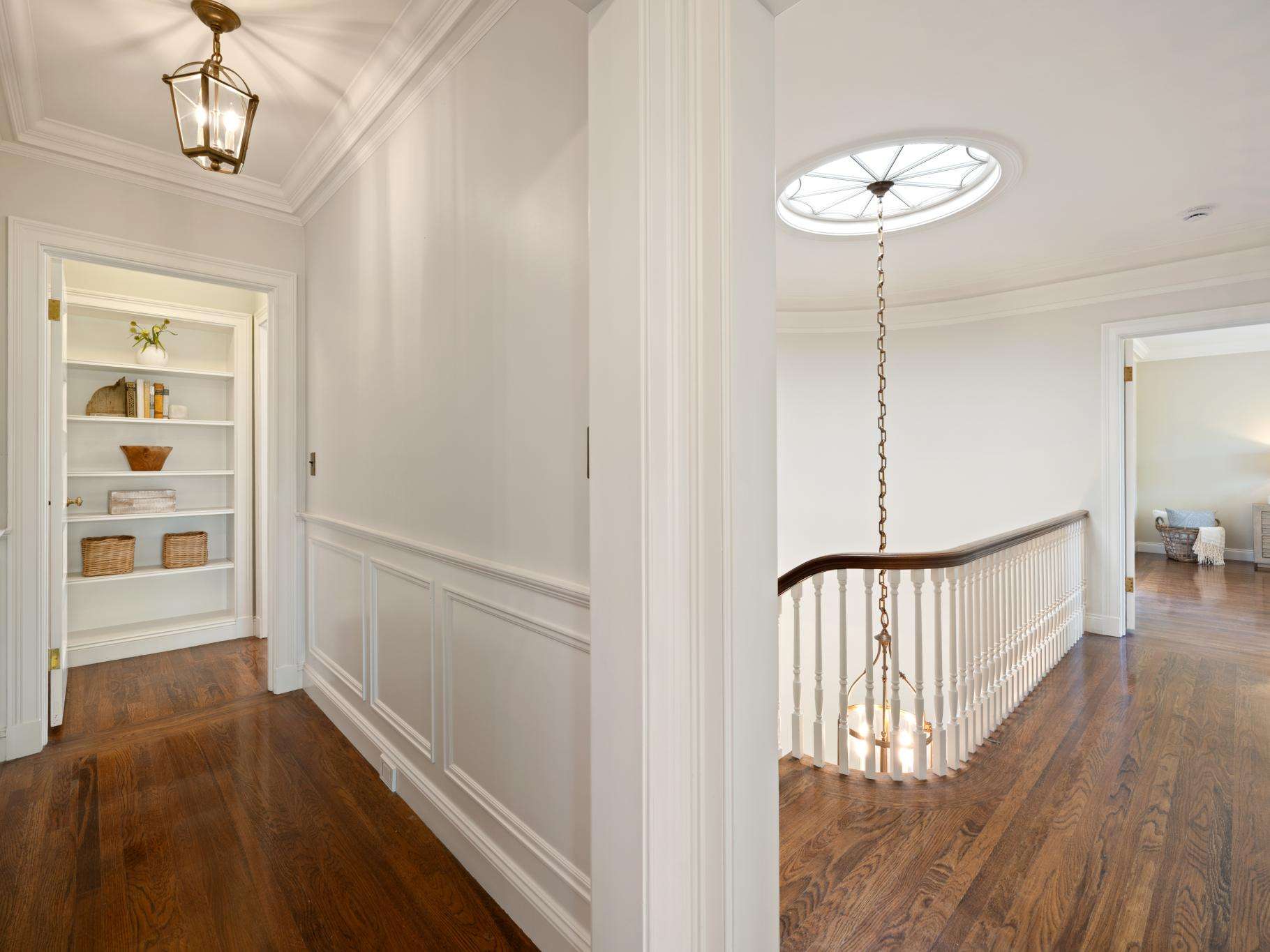 From the moment you enter, you're welcomed by a grand curved staircase, gleaming hardwood floors, and sun-drenched rooms that flow effortlessly from one to the next. Just off the entry, a moody, mahogany-clad study/media room offers a warm and intimate retreat. The formal living room features a striking fireplace and oversized windows, perfect for both quiet moments and lively gatherings. A gracious dining room leads to the heart of the home: a spacious kitchen and family room with a large island, abundant cabinetry, and a breakfast room wrapped in windows. A walk-through butler’s pantry provides added prep and storage space, while a well-placed bedroom and full bath offer comfort and flexibility for guests or multigenerational living. Throughout the home, French and Dutch doors connect the indoors with the surrounding grounds, beautifully blending interior and exterior living.